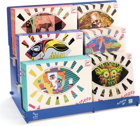 Denne præsentationsstander er designet til elegant fremvisning af produkter fra kunstkollektionen DJECO Inspired By. Den giver en ren og attraktiv opstilling, som fremhæver design og farver på de enkelte varer og understøtter salget.