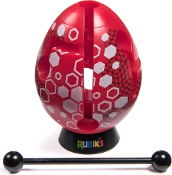Når hovedbruddet er løst, fjern pinden og udstil ægget på det medfølgende RUBIK’S‑stativ. Det minimalistiske design tager sig flot ud på både bord og hylde.