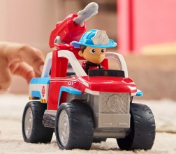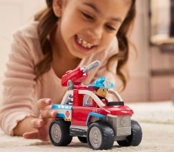 Med denne redningsquad dykker børn ned i PAW Patrol-universet og bliver en del af eventyret. Ryders detaljerede figur kan sættes i cockpittet og takket være de bevægelige lemmer og hoved er han klar til enhver aktion. De store hjul giver en jævn kørsel på glatte overflader, og den robuste konstruktion holder til daglig leg.