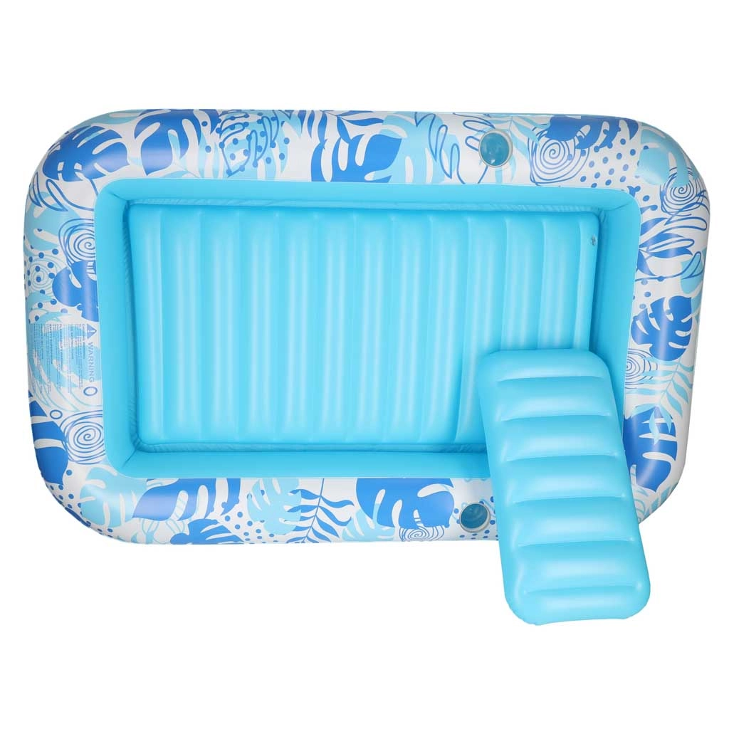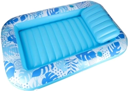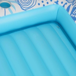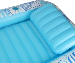 Skab din egen private afslapningszone på vandoverfladen. Den oppustelige liggemadras med aftagelig pude i blå-hvidt design kombinerer komfort, stabilitet og stil. Den pustes hurtigt op med kompressor eller elektrisk pumpe, og takket være flere luftkamre holder den formen selv ved længere brug.