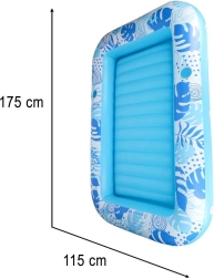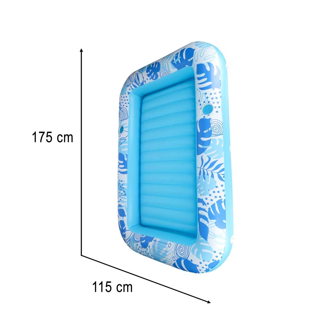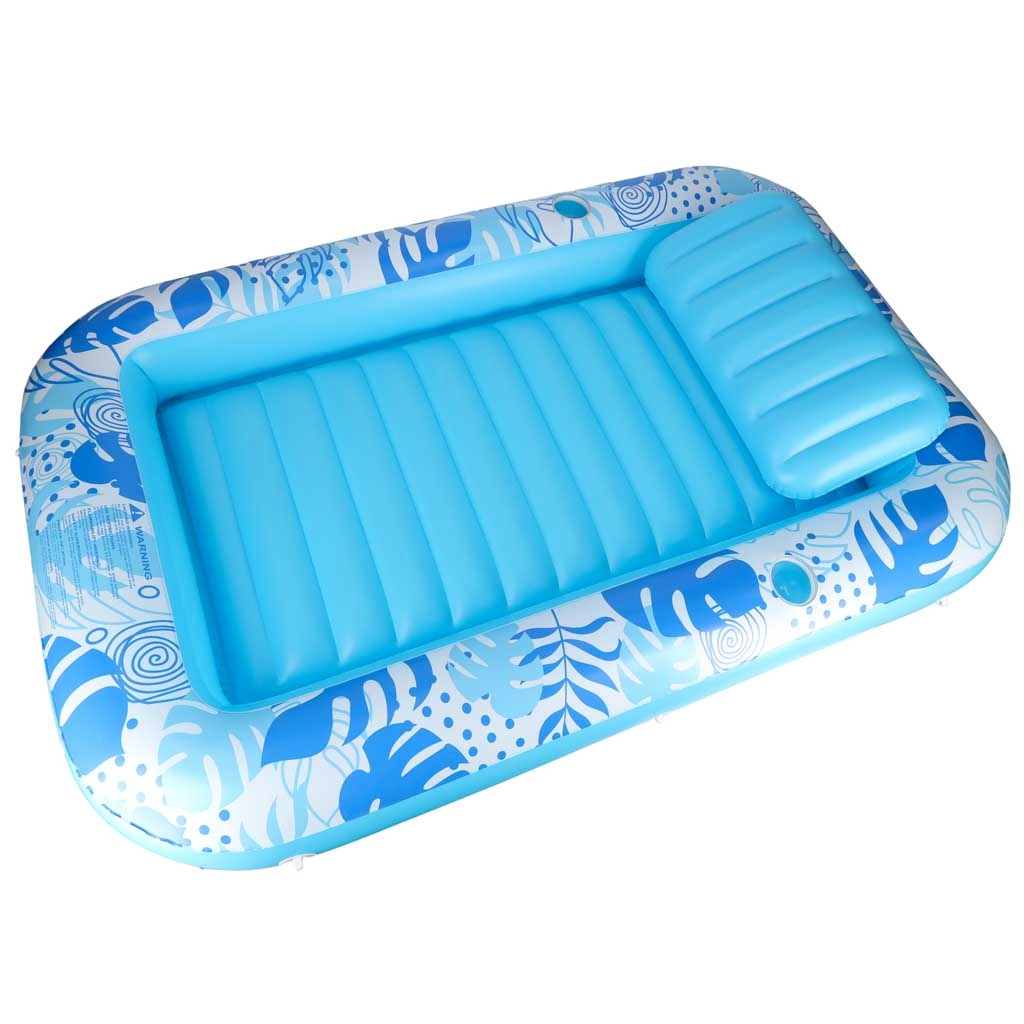 Gennemtænkte detaljer som 2 integrerede kopholdere og et omløbende reb til nemt at trække sig ind til bredden øger både sikkerhed og komfort på vandet. PVC i 0,25 mm tykkelse sikrer modstandsdygtighed ved sommerbrug, mens den blødt riflede liggeflade giver behagelig støtte.