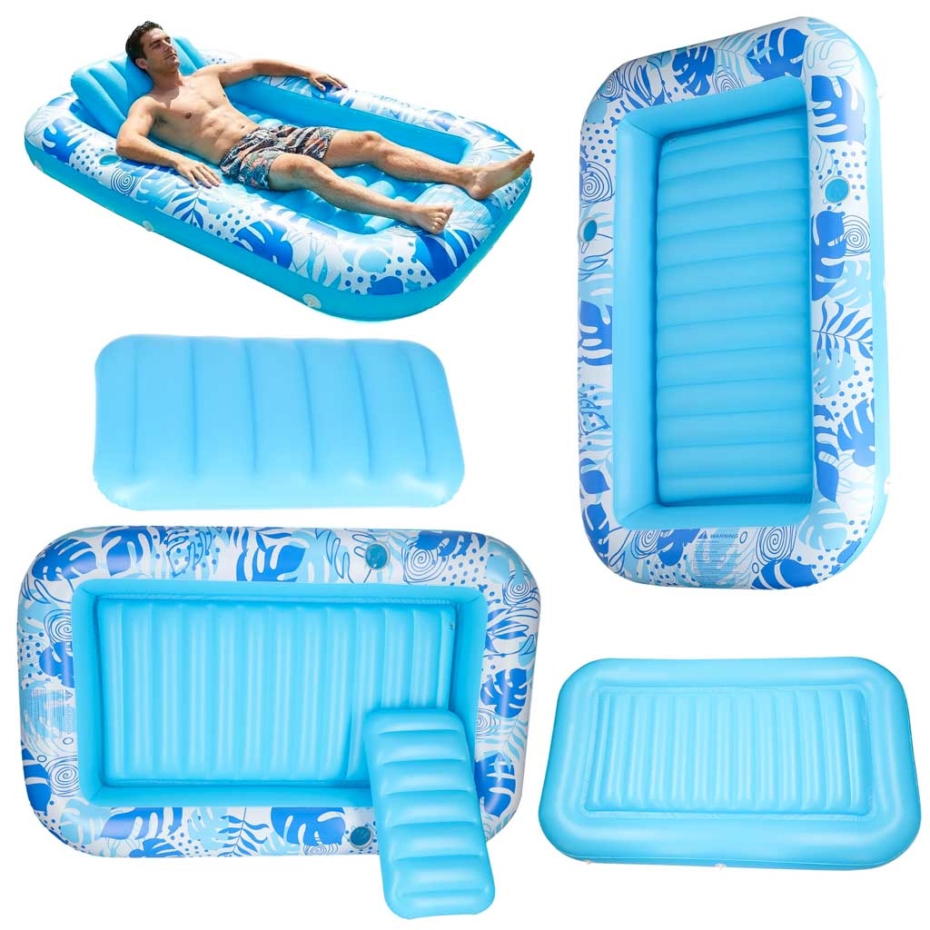 Nyd sommeren fuldt ud med denne rummelige oppustelige liggemadras med pude. Den tilbyder komfortabel støtte til hoved og nakke, holdbart PVC‑materiale og to kopholdere for maksimal komfort ved poolen eller søen. Takket være den stabile konstruktion og premium form er den ideel til solbadning, afslapning og rolig vuggen på vandet.