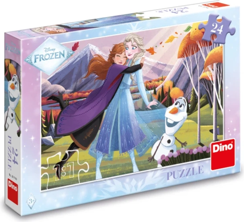 Sødt børnepuslespil med motiv fra eventyret Frost, som byder på sjov og træning af finmotorikken. Indeholder 24 brikker og måler efter samling cirka 26 × 18 cm. Ideelt til børn fra 4 år.