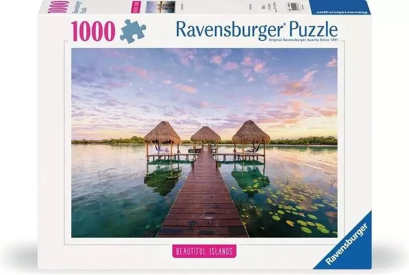 Oplev afslapning med et puslespil, der forener en vidunderlig scenografi og førsteklasses håndværk. Motivet med den rolige mole, der fører til eksotiske pavilloner, vækker din længsel efter harmoni, mens 1000 omhyggeligt udstansede brikker giver en behagelig dosis fokus og ro. Ideelt til hyggelige aftener med familien eller stille stunder for dig selv.