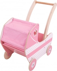 Denne smukke lyserøde barnevogn til dukker er udstyret med en stofkalesje og dekorative udsmykning, der vil glæde enhver lille pige. Legetøjet hjælper med at udvikle kreativitet og sociale færdigheder hos børn.