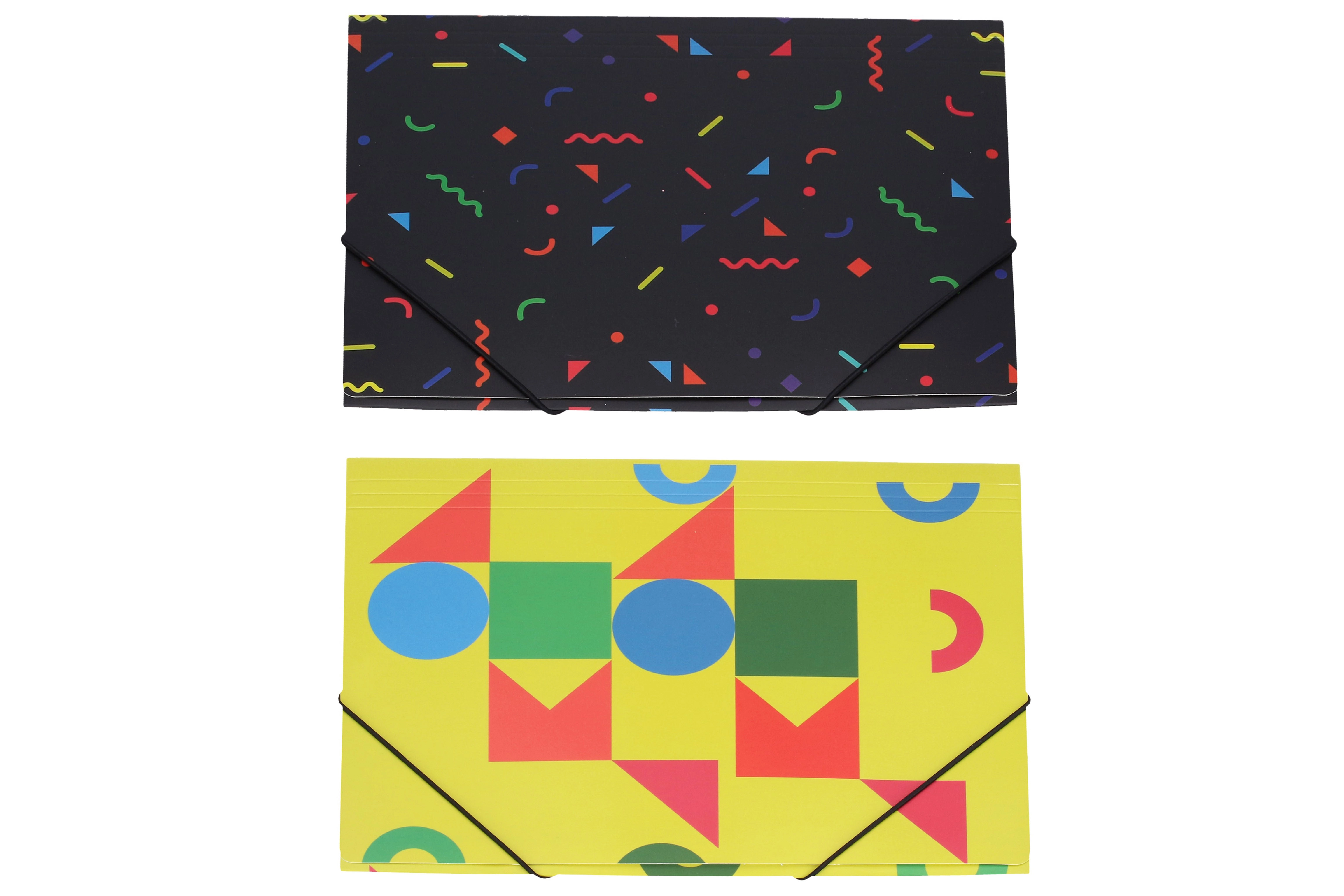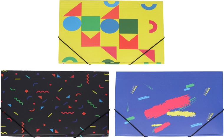 Praktisk mappe med elastik i størrelsen 31,4 × 23,5 cm, som holder dokumenter sikkert samlet. Fås i farvemix, ideel til skole, kontor og på farten.