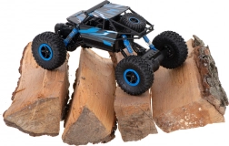 RC Rock Crawler i skala 1:18 er en robust terrænklatrer bygget af holdbar plast, som tåler stød og væltninger. Den enkle styring glæder begyndere, mens chassisegenskaberne og firehjulstrækket begejstrer outdoor-entusiaster.