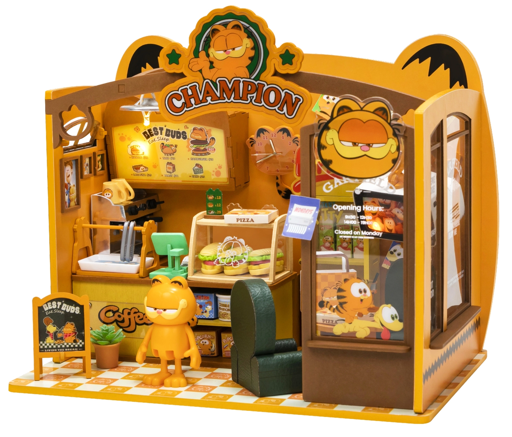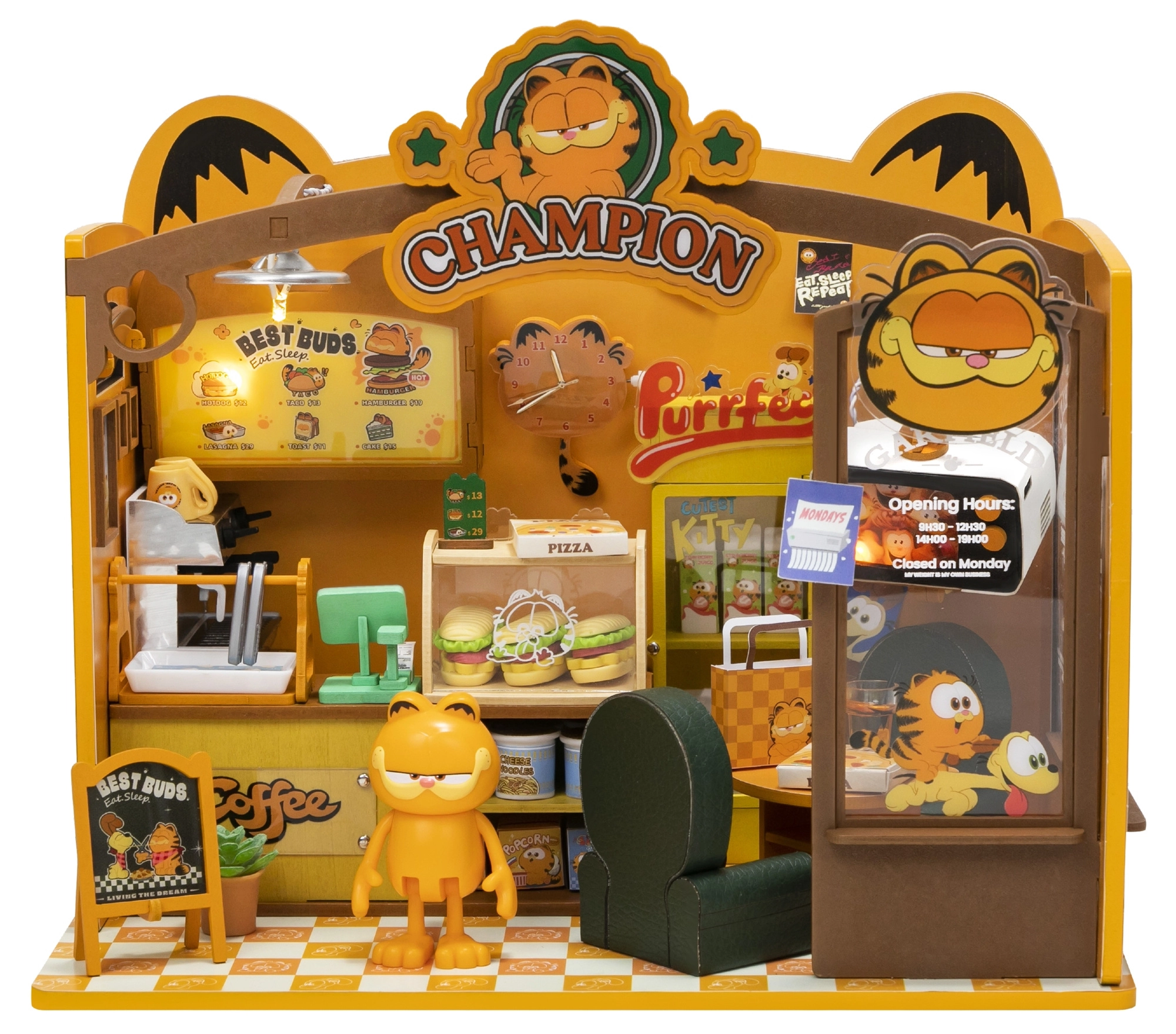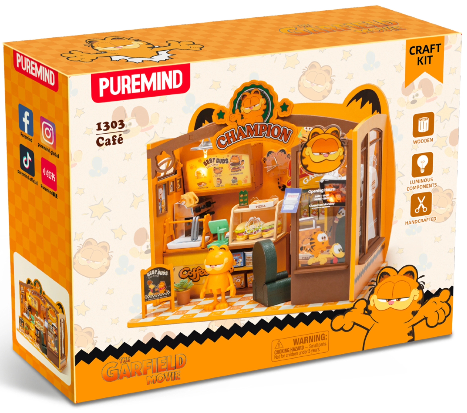 Dette detaljerede træ-sæt fremstiller en hyggelig café-scene inspireret af The Garfield Movie. Præcist udskårne dele passer nøjagtigt sammen og skaber et dekorativt diorama med karakteristiske interiørdetaljer. Integreret LED-belysning understreger stemningen og forvandler den færdige model til et iøjnefaldende indslag på hylden eller skrivebordet.