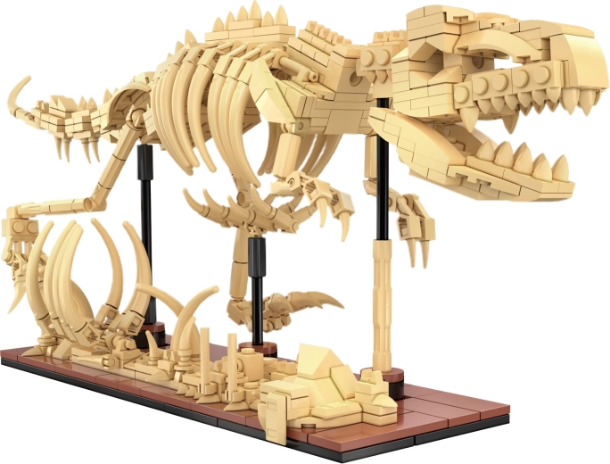 - Ombygning til T-Rex: ved at kombinere alle dele (565 dele) skaber du en stor udstillingsmodel