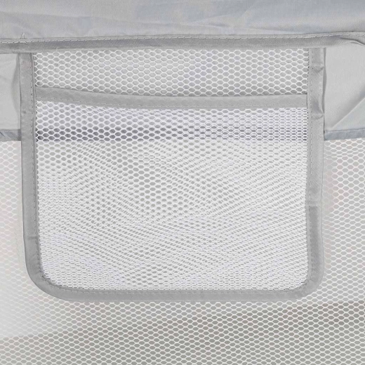 Denne sammenklappelige børnegård giver børn fra 6 måneder et sikkert, luftigt og overskueligt område til leg og ro. Net-siderne sikrer fremragende luftcirkulation og bedre overblik for forældre, mens polstrede overkanter øger komfort og sikkerhed.