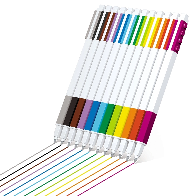 - LEGO-plade til fastgørelse på etui, notesbog eller sammenkobling af flere penne