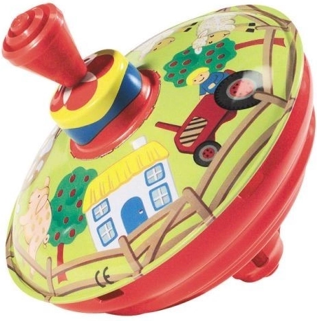 Denne traditionelle snurretop med bondegårdstema er den ideelle legeting for de mindste. Den enkle tryk-mekanisme får toppen til at snurre, hvilket giver den karakteristiske lyd og visuelle stimuli.