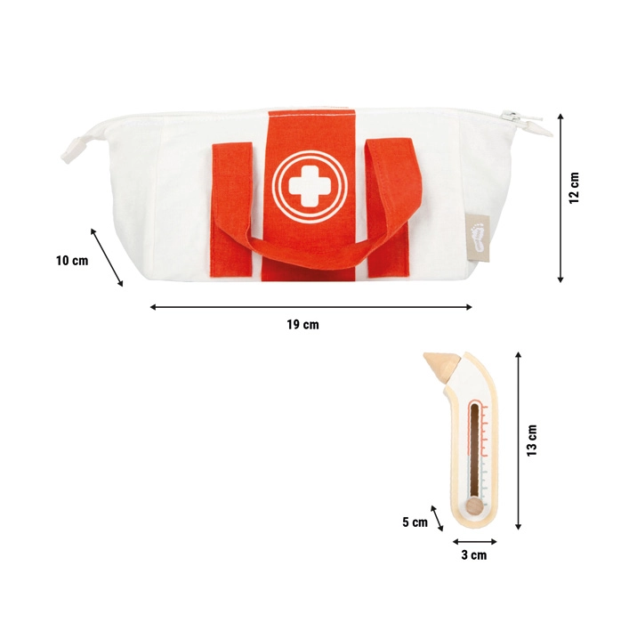 Realistiske funktioner som en indskydelig sprøjte og et justerbart termometer udvikler koordination og understøtter naturlig læring om krop og sundhed. Den høje kvalitet i træ og tekstil sikrer lang holdbarhed og sikker leg.