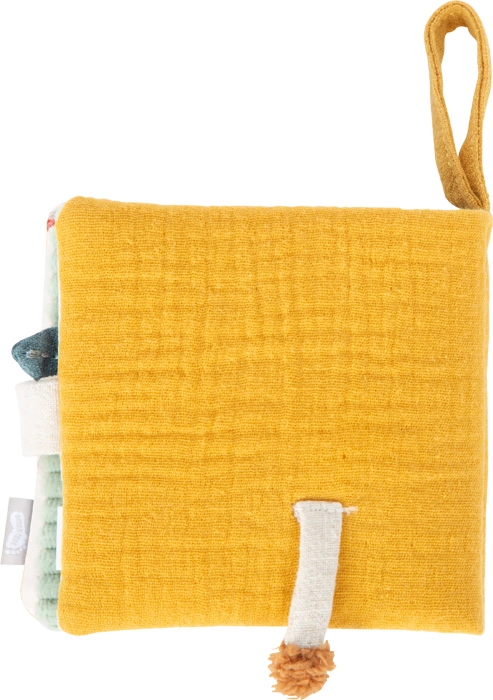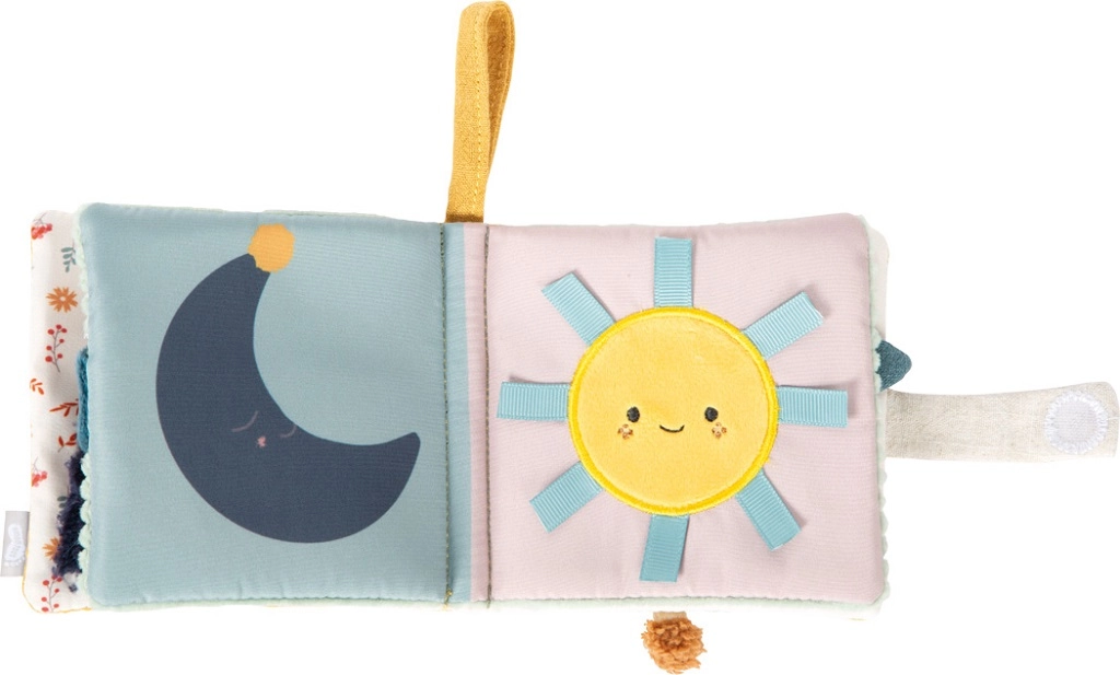 Der medfølger også en rem/klips til sikker fastgørelse på barnevogn, autostol eller aktivitetsstativ, så bogen altid er inden for rækkevidde. Det praktiske format og den lette konstruktion gør den perfekt som legetøj både på tur og derhjemme.