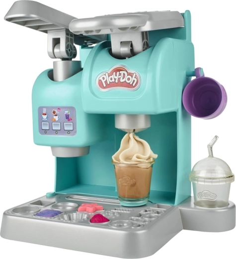 Sættet er udformet som en lille café, der styrker kreativitet, finmotorik og rolleleg. Med den interaktive “kaffemaskine” fylder børnene kopperne med PLAY-DOH, drejer og skubber dem videre til “topping”-stationen, hvor de laver luftig “flødeskum” og andre dekorationer. Takket være regnbuefarver, glimmer og tofarvede bøtter af modellervoks bliver kreationerne altid unikke.