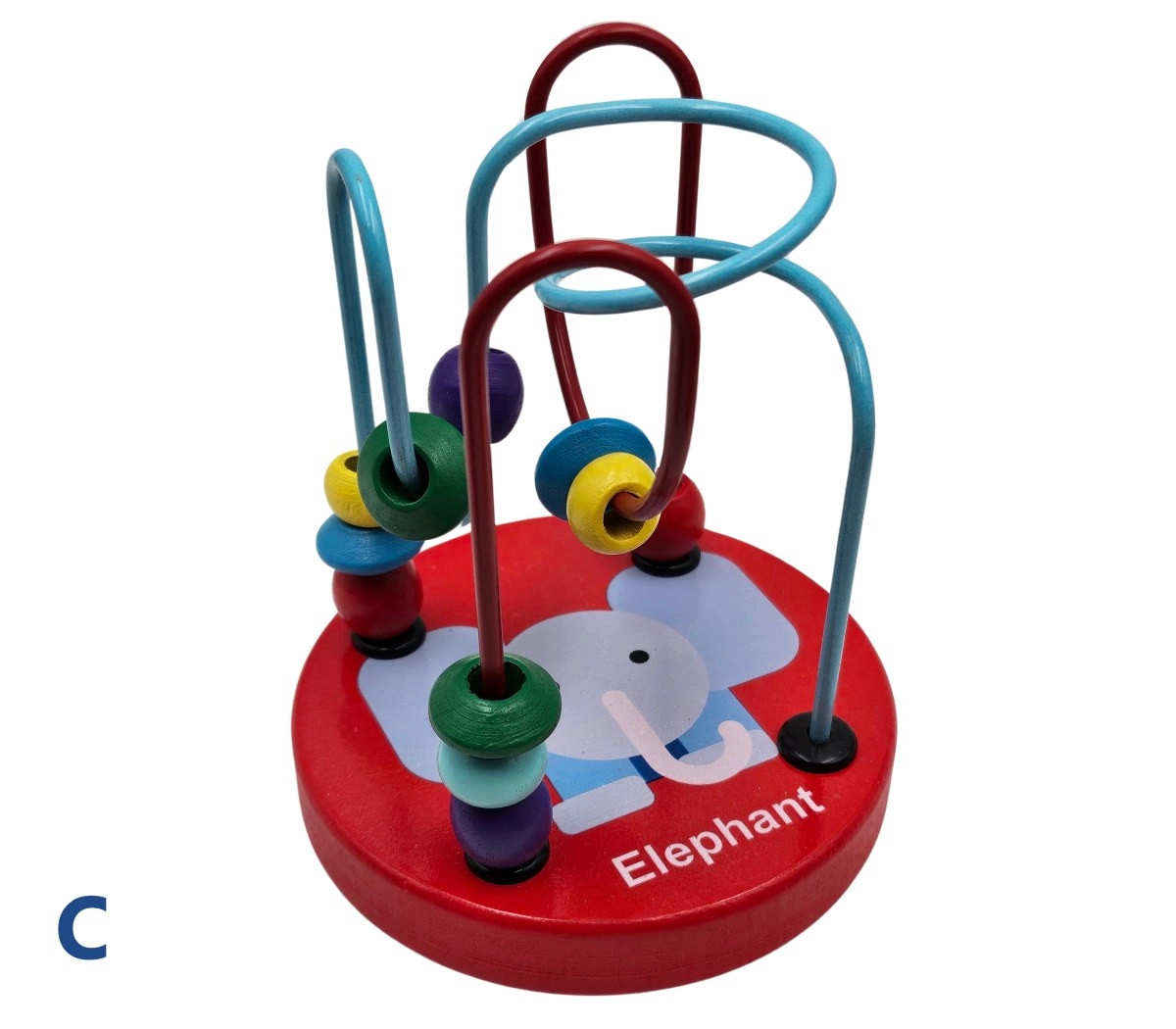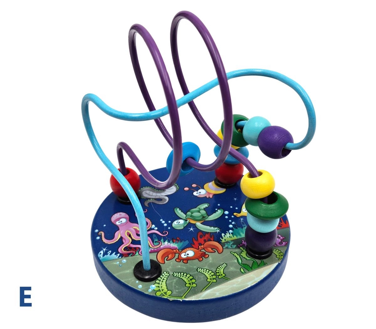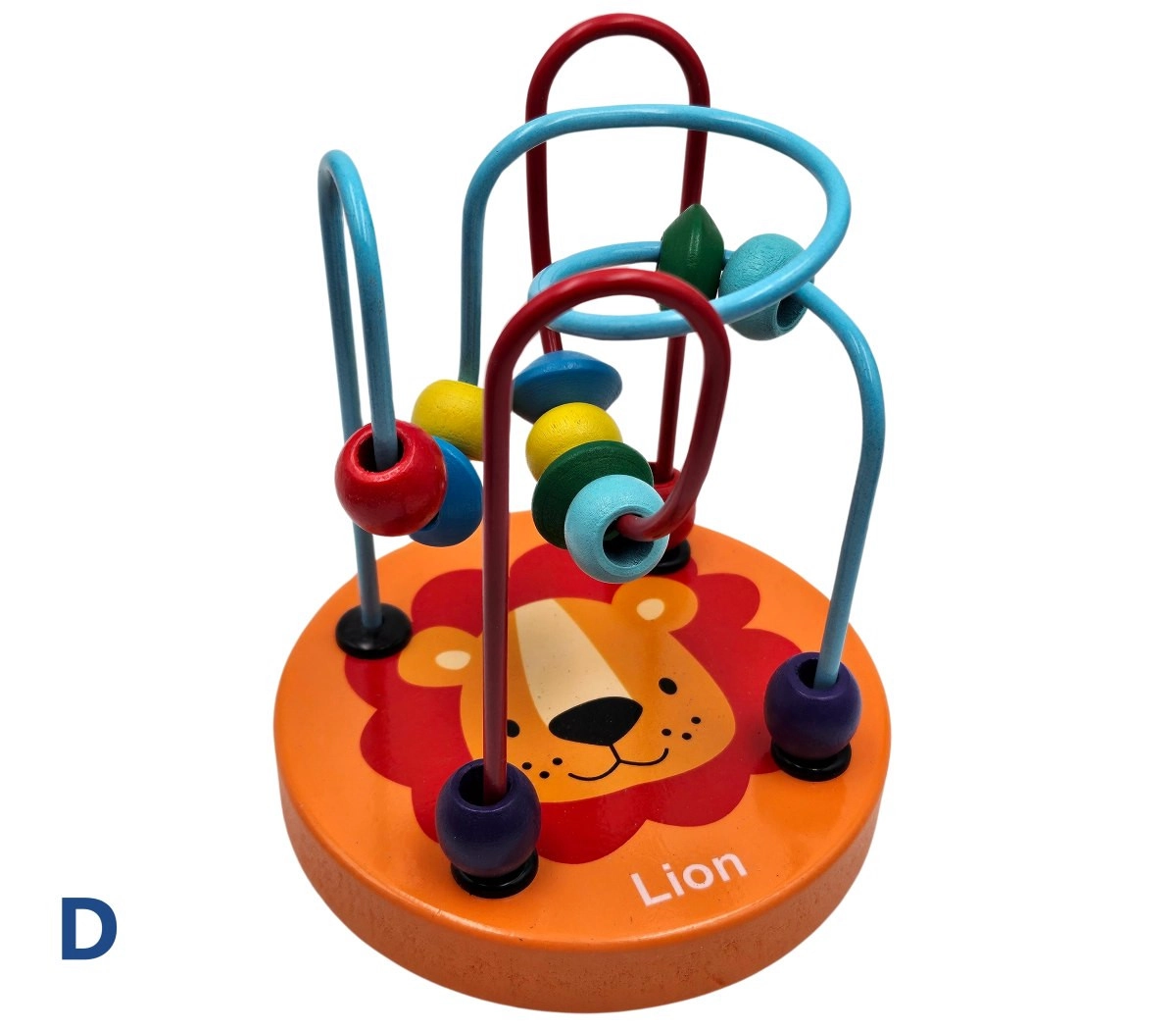 Denne charmerende trælabyrint med dyremotiver inviterer børn til at udforske og lære gennem leg. De farverige perler glider let langs metalsløjferne og understøtter udvikling af finmotorik, tålmodighed og logisk tænkning. En stabil træbase og glatte overflader sikrer sikker og behagelig leg.