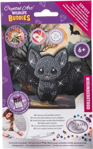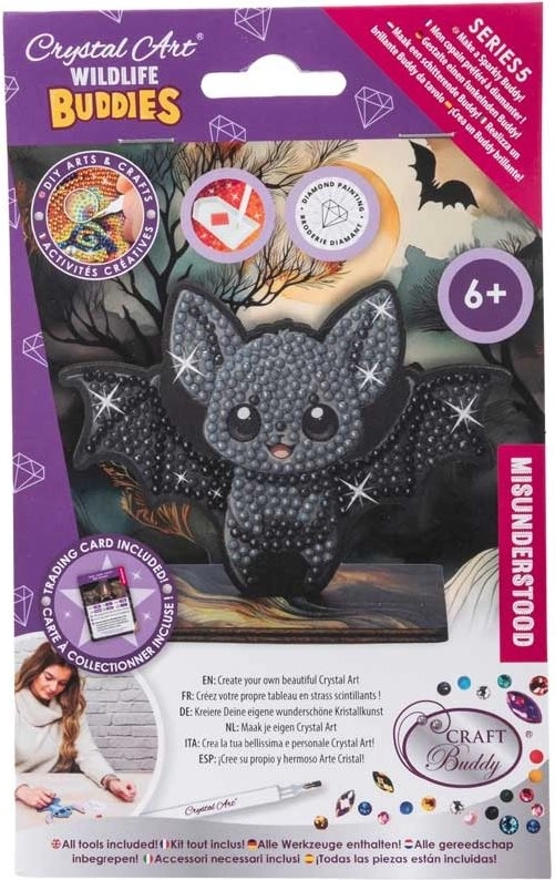 Dette kreative CRYSTAL ART-sæt med flagermusmotiv er en fantastisk måde at slappe af på og samtidig skabe en smuk, glitrende dekoration. Takket være tydeligt markeret skabelon og selvklæbende overflade er processen intuitiv og velegnet til både børn og voksne.