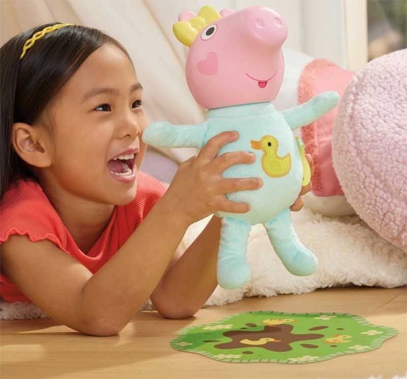 Den søde interaktive baby Evie fra den populære verden Gurli Gris vil glæde enhver lille omsorgsperson. Hun har et blødt plyskrop, bærer en turkis sparkedragt som i serien og kan mere end 20 lyde – fra fnisen og grynten til fodringslyde, sut og en beroligende vuggevise med søvnsnorken. Ideel til kram og rolleleg.
