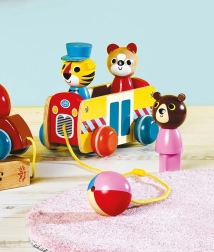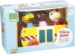 Denne trækbus er lavet af kvalitets træ og tilbyder ikke kun sjov, men også en udfordring for små tænkere. Med klare farver og dyr, der kan indsættes og tages ud, understøtter den børns udvikling på flere områder: