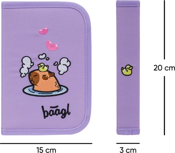 Skolesættet BAAGL Zippy Kapybara er designet til at give børn fra 1. klasse maksimal komfort, overblik og sikkerhed. Den ergonomiske skoletaske med forstærket krop og det justerbare ERGO ADJUSTABLE-system vokser med barnet og sidder perfekt takket være fuldt justerbare stropper. Det praktiske vippe-åbningssystem gør det nemt at nå bøgerne direkte ved bordet, og det gennemtænkte indre med elastik holder indholdet tæt ved tyngdepunktet.