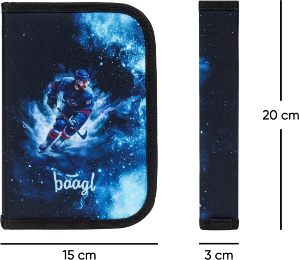 Det komplette skolesæt BAAGL Zippy Hockey til de første klassetrin inkluderer en ergonomisk skoletaske, et rummeligt penalhus og en praktisk pose. Det tilbyder justerbart bæresystem, sikkerhedsreflekser, pålidelige YKK-lynlåse og robuste vandafvisende materialer med hockeymotiv, som gør hver skoledag lettere for børnene.