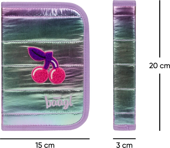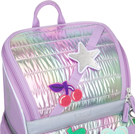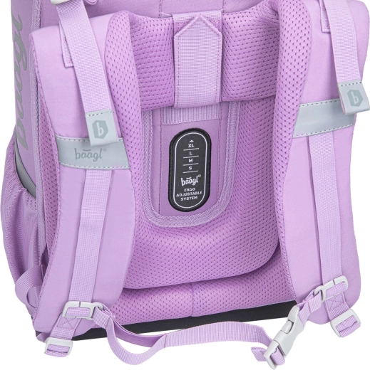 Skolesættet BAAGL Zippy Lavender kombinerer praktisk udførelse med et iøjnefaldende, iriserende glansdesign. Den ergonomiske skoletaske med det justerbare rygsystem ERGO ADJUSTABLE tilpasser sig barnets kropsbygning, mens det opklappelige låg og den gennemtænkte organisering gør det let at nå bøger og skriveredskaber direkte fra bordet. Sættet kompletteres af et penalhus med to flapper og robust YKK-lynlås samt en vaskbar pose til sko eller sportstøj.