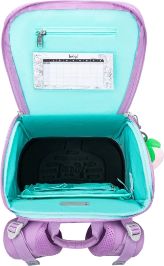 Det komplette skolesæt i det ensartede Lavender-design kombinerer komfort, sikkerhed og gennemtænkt organisering. Den ergonomiske BAAGL Zippy-skoletaske med det glidende ERGO ADJUSTABLE-system tilpasses barnets krop og takket være det forstærkede korpus, den solide bund og vandafvisende materiale holder den til selv krævende skoledage. Medfølger gør et rummeligt penalhus, snorepose til idræt, en pung til småting samt en beskyttelsesvest/forklæde til skoleprojekter.