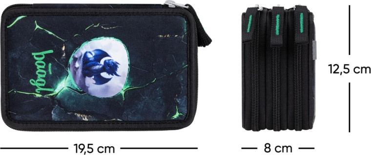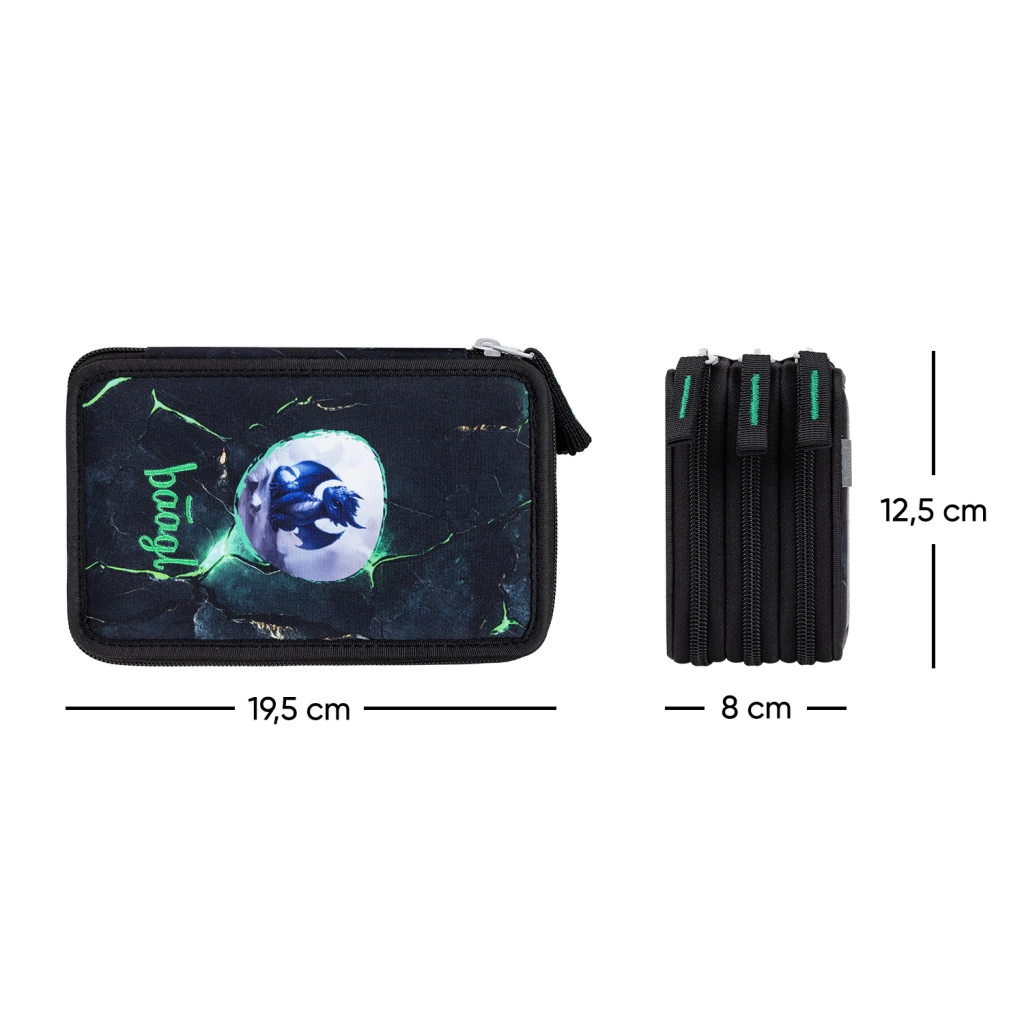 Opdag et praktisk og holdbart trelags penalhus fra BAAGL med et markant dragemotiv. Tre separate lynlåsrum giver overskuelig opbevaring af alt, en skoleelev har brug for – fra farveblyanter og tuscher til lineal og viskelæder. Mærke-lynlåse fra YKK og en forstærket konstruktion sikrer lang levetid selv ved daglig brug.