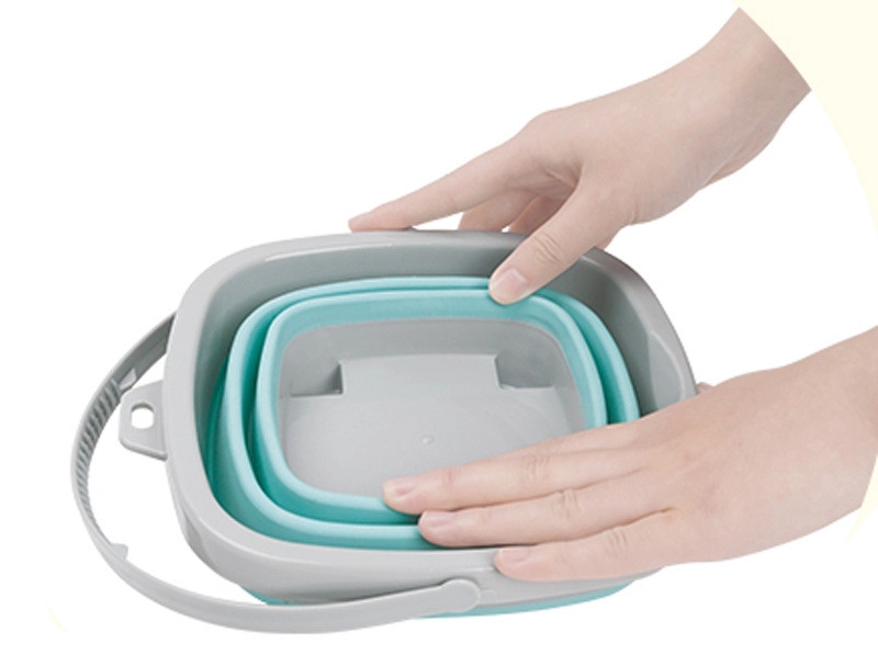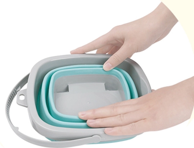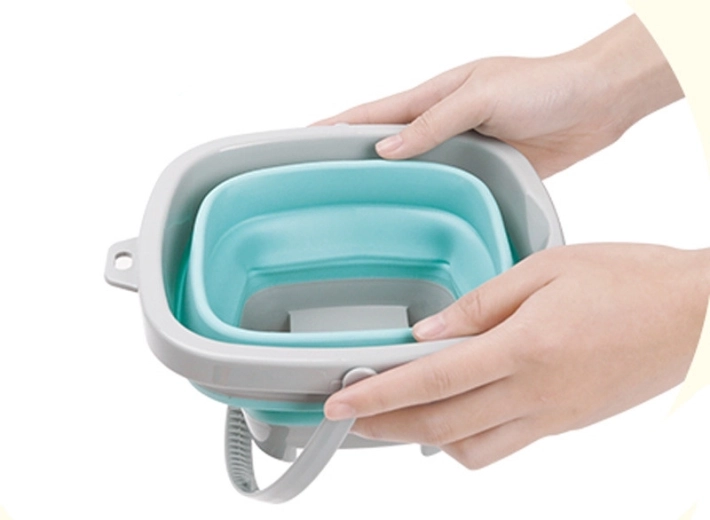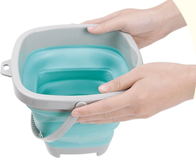 Silikonespanden WOOPIE kombinerer holdbare materialer og smart design. Den øverste kant, bunden og håndtaget er af plast, mens siderne er af robust, harmonikafoldet silikone. Det gør det nemt hurtigt at folde spanden flad og folde den ud igen, når der er brug for det.