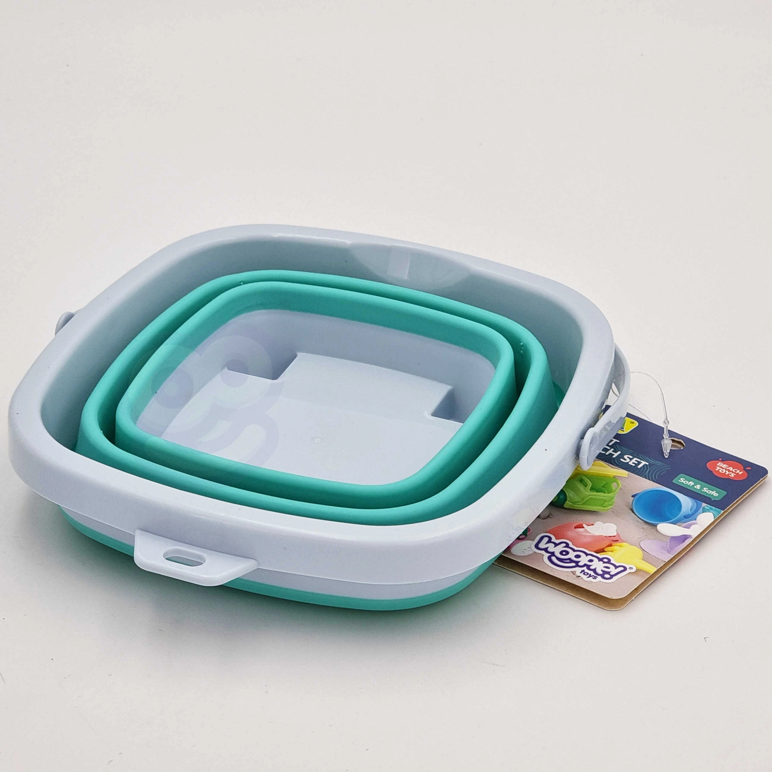 Den praktiske sammenklappelige silikonespand WOOPIE er ideel til sandkassen, stranden og haven. Takket være den sammenklappelige konstruktion fylder den minimalt, er let at bære og nem at opbevare – den passer i en børnerygsæk, barnevogn eller strandtaske.