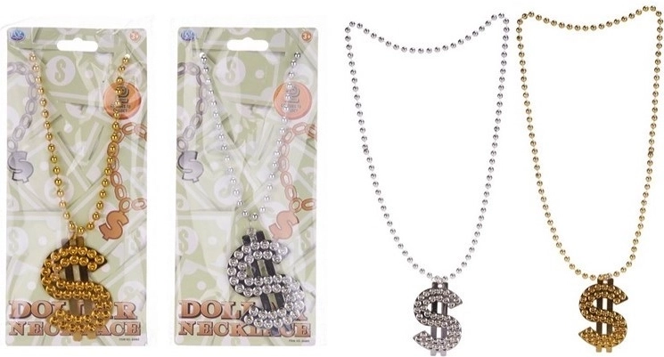 Pift dit outfit op med det ikoniske dollarsymbol. Denne markante halskæde passer perfekt til fester, karneval, temabegivenheder eller som sjov rekvisit til fotos. Den lette konstruktion sikrer behagelig brug uden unødig belastning.