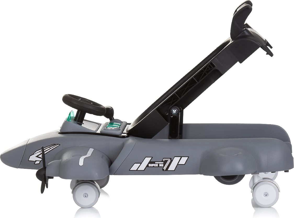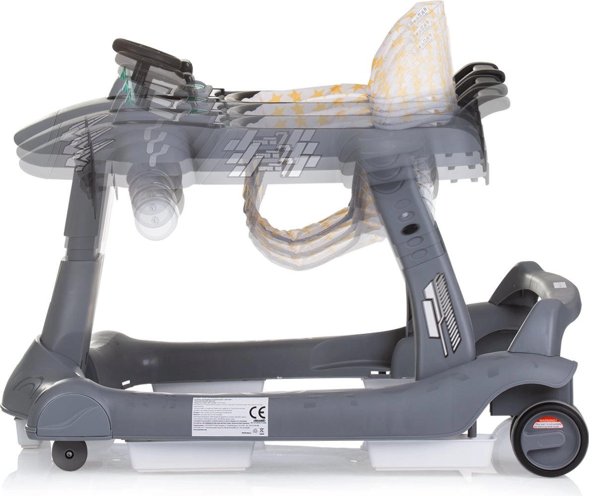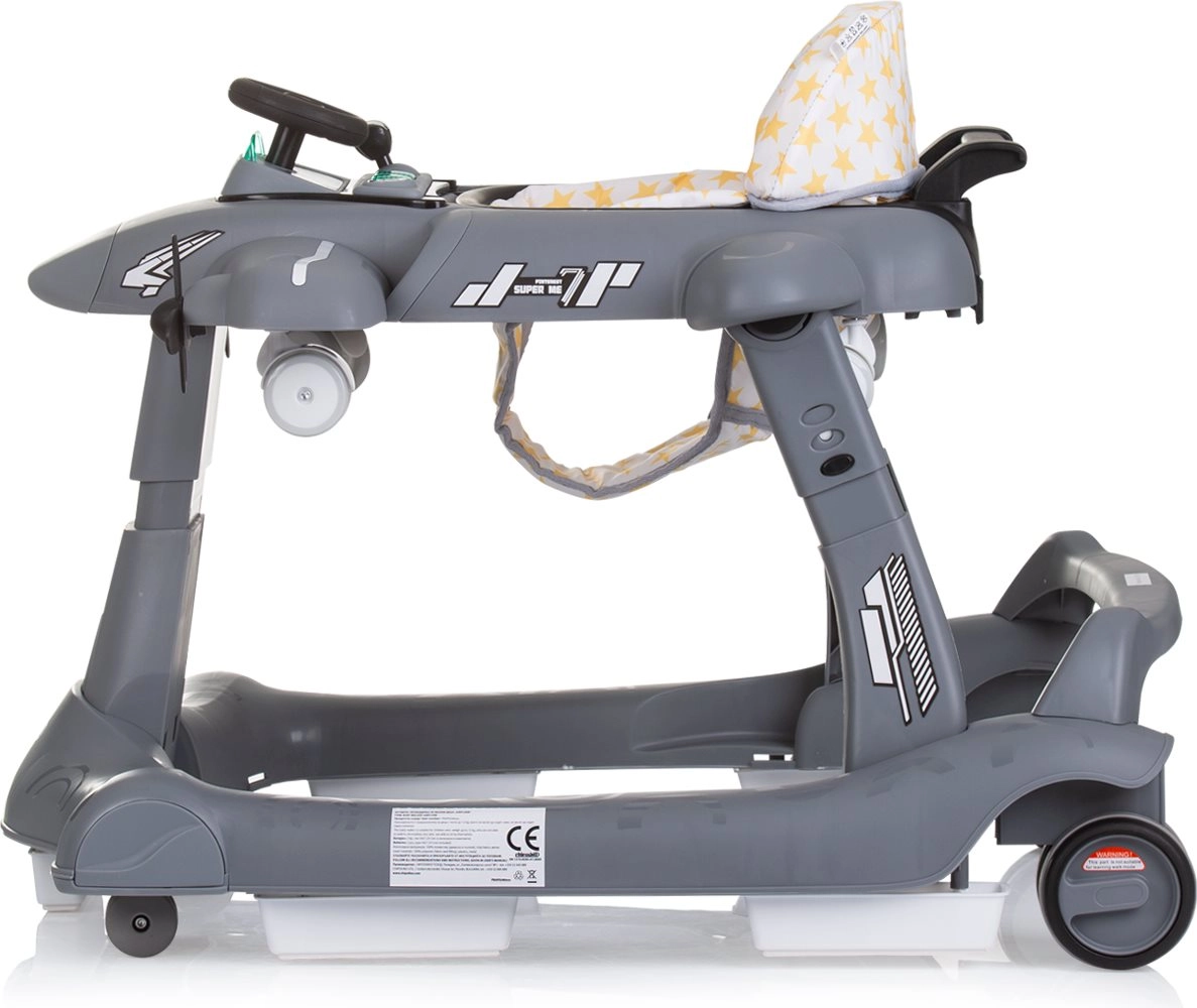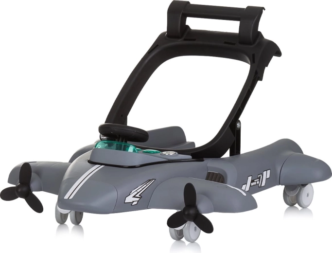 Interaktiv gåstol 3-i-1 CHIPOLINO Airplane Grey støtter barnets første skridt, balance og koordination fra 6 måneder. Den tilbyder et farverigt lydpanel med legetøj, en bred, stabil base, 3 niveauer af sædehøjde samt mulighed for at omdanne den til et skubbende legetøj – et fly. Der er også hastighedsregulering, lås af baghjul og sikkerhedsstoppere for maksimal beskyttelse.