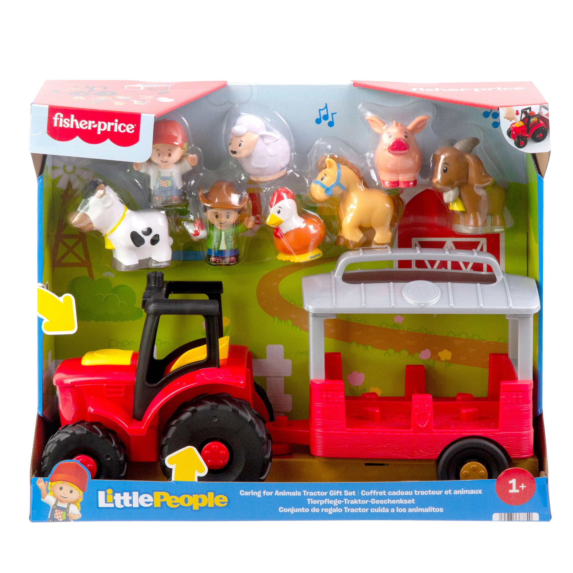 Denne farverige traktor med store hjul og en aftagelig trailer begejstrer alle små dyreelskere. Når man trykker på førersædet eller knappen på motorhjelmen, aktiveres glade lyde og musik, som inviterer til aktiv leg og udforskning af livet på gården.