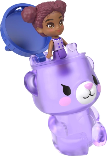 Oplev magien ved lommeleg med Polly Pocket Blåbær-bamser kompaktet. Det søde bamseetui folder sig ud til en miniscene fyldt med detaljer, som understøtter kreative historier og finmotorik. Børn kan dreje stolene, “fodre” bamserne og udforske overraskelser i køleskabet.