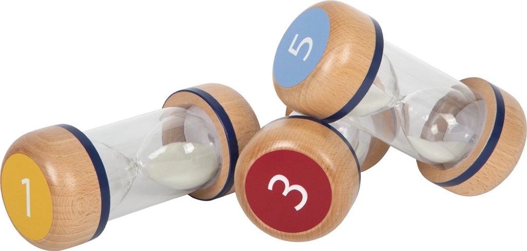 Perfekt til hjemmet, børnehaven og skolen – til rutiner (tandbørstning), læsestunder, lege og korte arbejdsaktiviteter. Sættet udvikler tidsfornemmelse, understøtter regularitet og hjælper børn med at planlægge bedre. Med en højde på ca. 14 cm passer de godt til børnehænder.