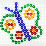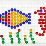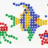 Denne krystalmosaik er et ideelt valg til den første kreative leg. Med de gennemsigtige, farvede knapper opstår tydelige og legende billeder på den hvide plade. Børn øver tålmodighed, hånd-øje-koordination og lærer at genkende farver og former.