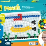 I æsken finder du en robust plastgitterplade på 21 × 16 cm og 140 knapper med en diameter på 10 mm – perfekt til en barnehånd. Mosaikken indeholder ikke skabeloner og understøtter derfor naturligt fri kreativitet og selvstændig opfindelse af motiver.