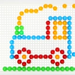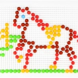 140 krystalknapper i forskellige farver lader børn lægge originale billeder – fra dyr til køretøjer.