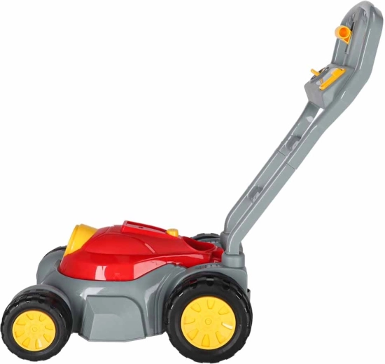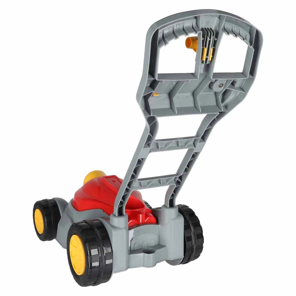 Sjov plæneklipper til børn, som under kørsel laver sæbebobler, motiverer til udendørs bevægelse og fascinerer med lys- og lydeffekter. Nem betjening med én knap, ergonomisk håndtag og stabile fire hjul for sikker leg i haven og derhjemme.