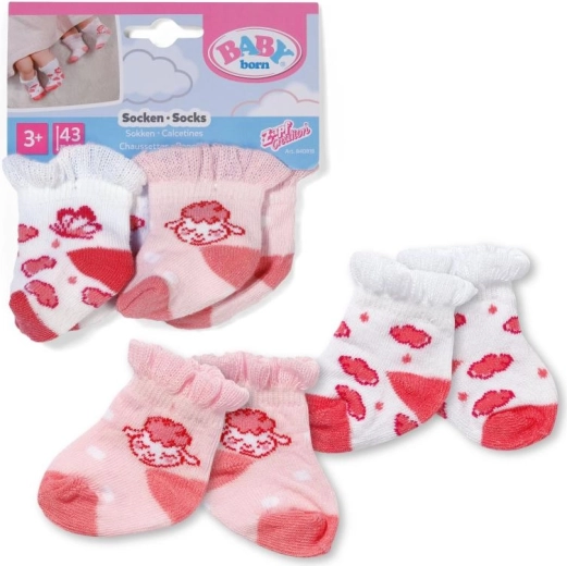 Pakken indeholder 2 par strømper i smukke farver og motiver – ideelle til at kombinere med BABY born-outfits.