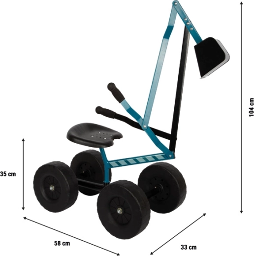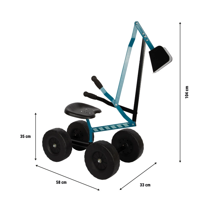 Sædehøjde på 35 cm og ergonomisk formede greb er tilpasset børnehænder, så kørsel og gravning bliver komfortabel og intuitiv. Ideel til haven og sandkassen, motiverer til aktiv leg udendørs og udvikler rumlig forståelse samt holdspil.