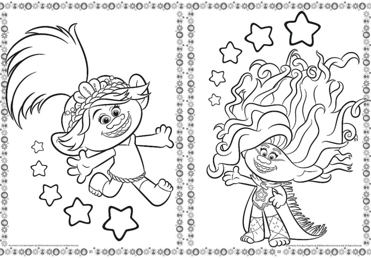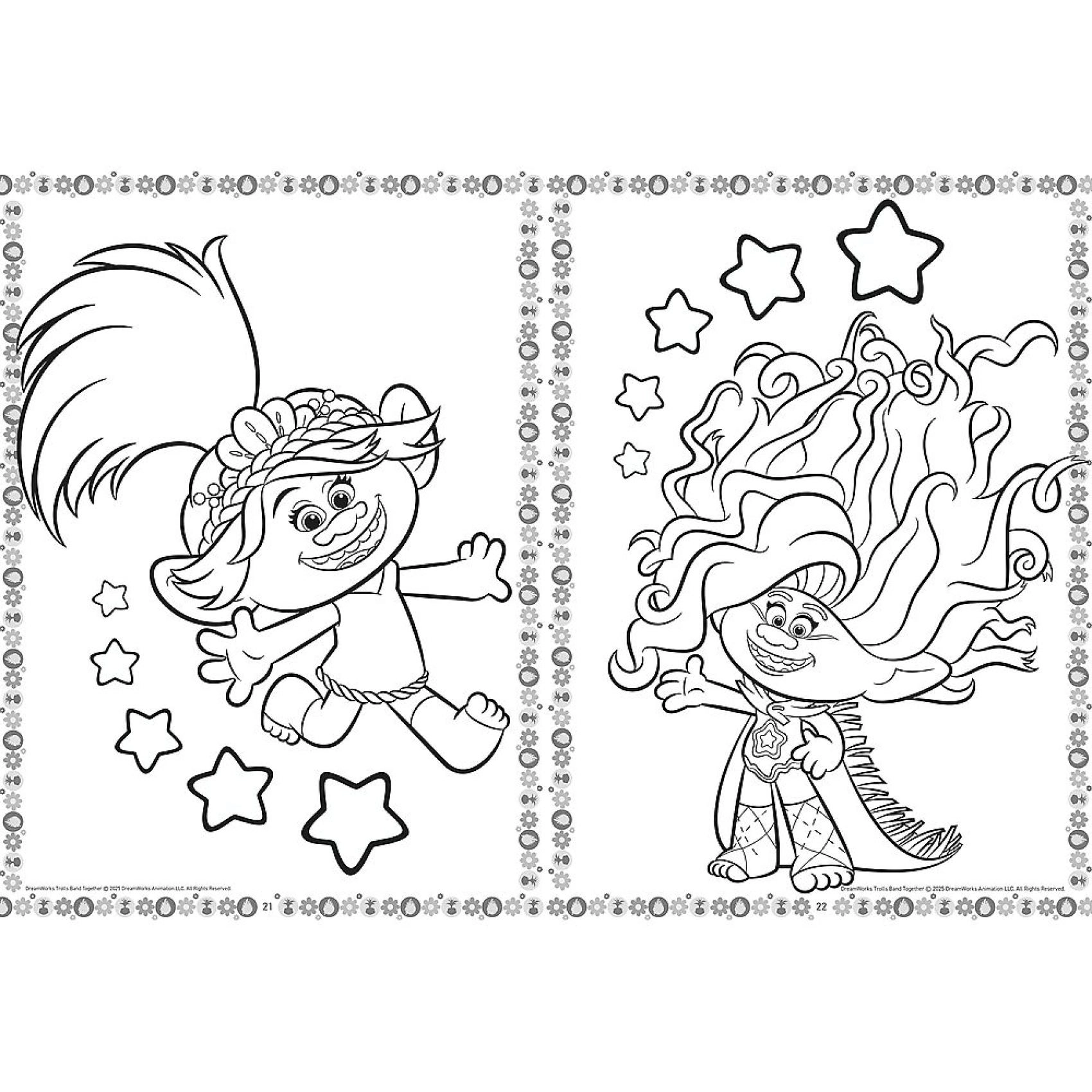 Udforsk farvernes verden med Trolls-malebogen i formatet 20 × 27,5 cm. Hver side tilbyder overskuelige konturer til farvelægning, som børn nemt kan klare, og motiverer samtidig til at skabe deres egne farvekombinationer.