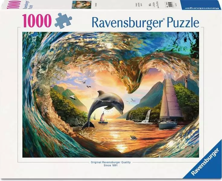 Fordyb dig i den beroligende verden af puslespil med RAVENSBURGER Hjertet af havets bølger. Takket være avanceret produktionsteknologi kan du se frem til præcise og rene udskæringer, solide brikker og dybe, mættede farver, der giver motivet dybde og elegance.