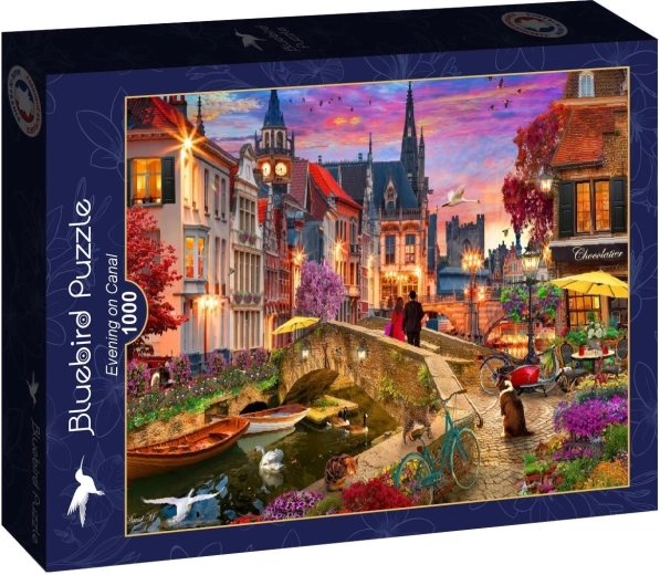 Udforsk den detaljerede illustration af en romantisk aften ved kanalen og forkæl dig selv med en behagelig afstressende aktivitet. Puslespillet med 1000 brikker glæder både begyndere og erfarne samlere og danner efter samling et dekorativt billede, der tager sig flot ud i ramme.