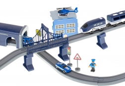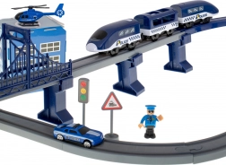 Denne detaljerede polititogbane forener børns favoritter – tog, biler, helikoptere og politi. Med det rige sæt kan du bygge op til 6 forskellige sporvarianter, inklusive to-etagers føring, bro og tunnel. Magnetiske koblinger gør håndteringen nem, og det motoriserede lokomotiv sikrer jævn kørsel.