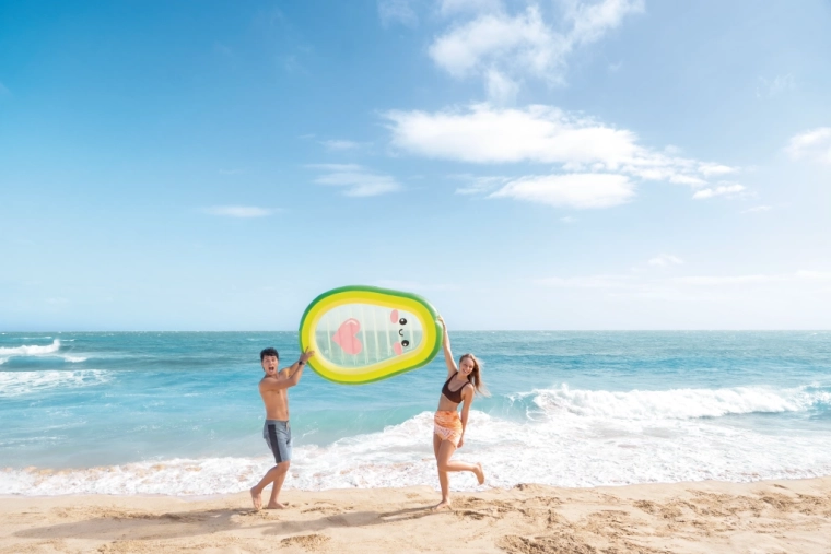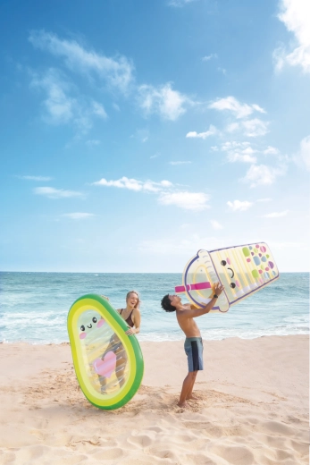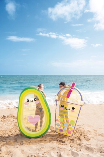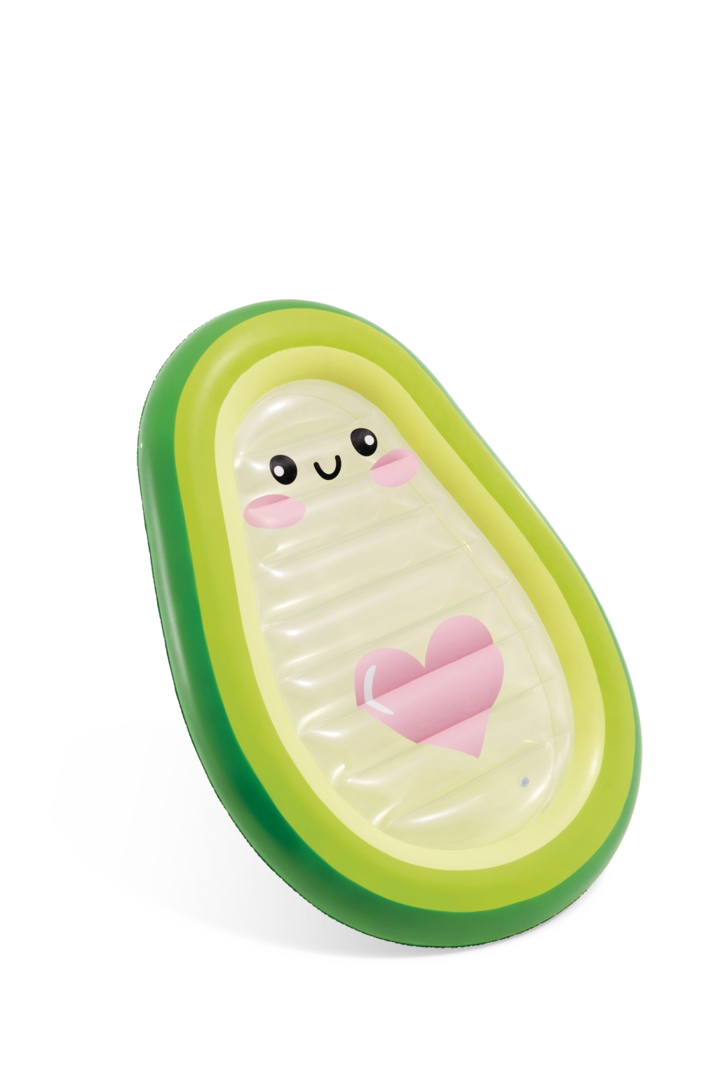 Nyd sommeren fuldt ud med en legesyg liggemåtte formet som en avocado, som skiller sig ud med et gennemsigtigt midterstykke med et sødt ansigt og et lyserødt hjerte. Den er lavet af slidstærkt PVC, har to ventiler til hurtig oppustning og tømning og tilbyder behagelig liggekomfort samt stabilitet på vandet. Ideel til pool, strand og ferie – for voksne og større børn. Oplev kombinationen af stilfuldt design, komfort og sjov i vandet.