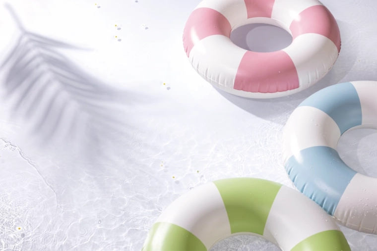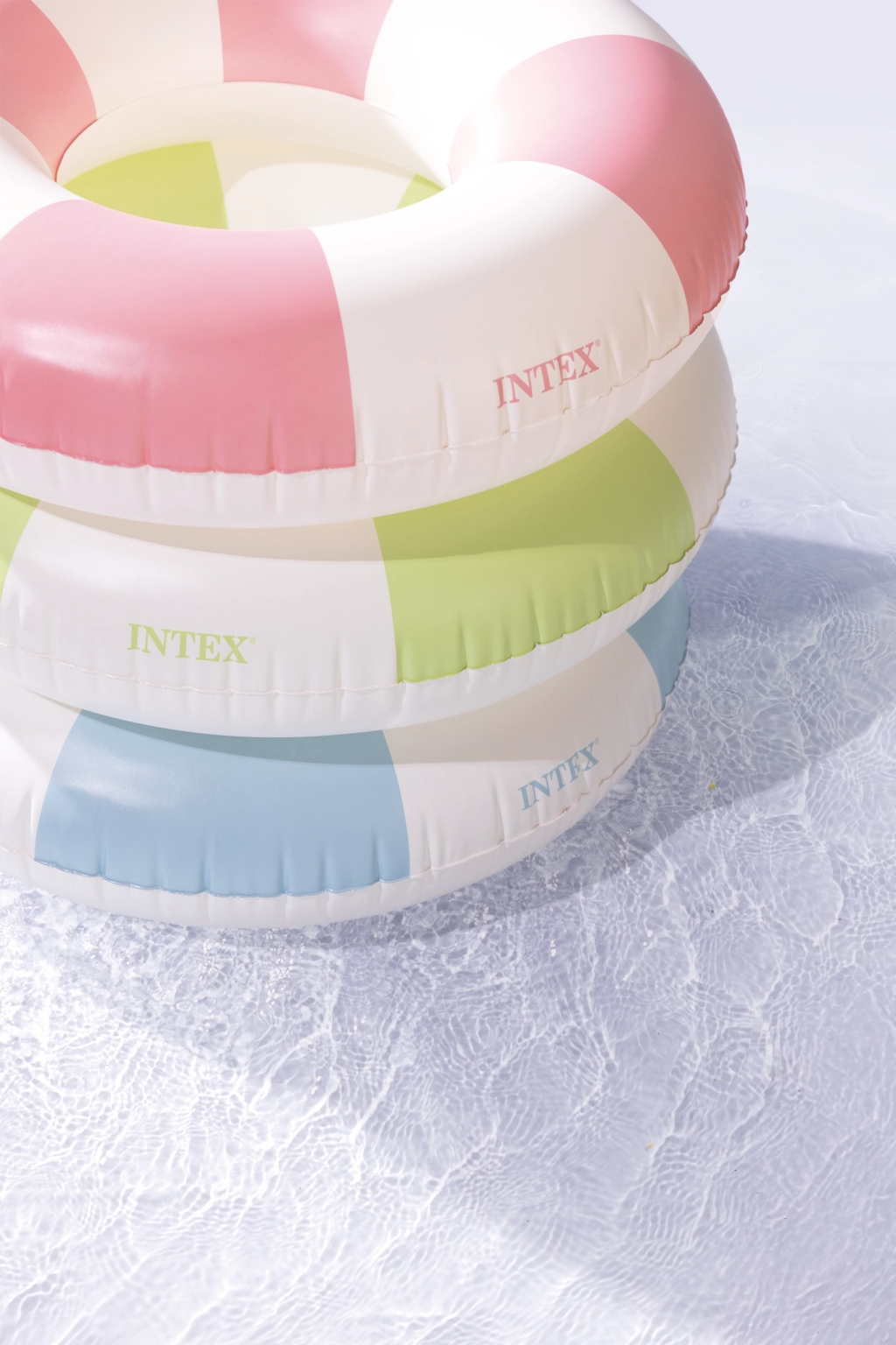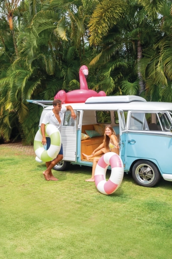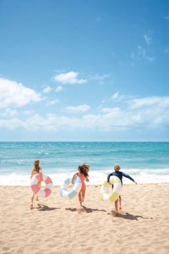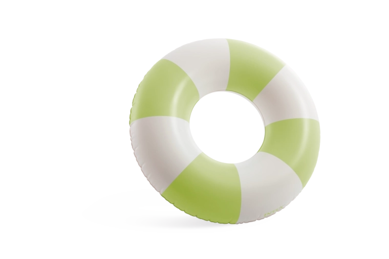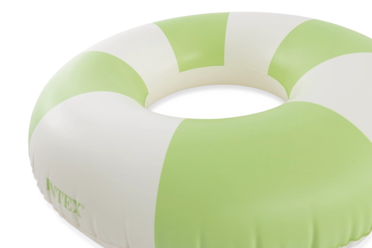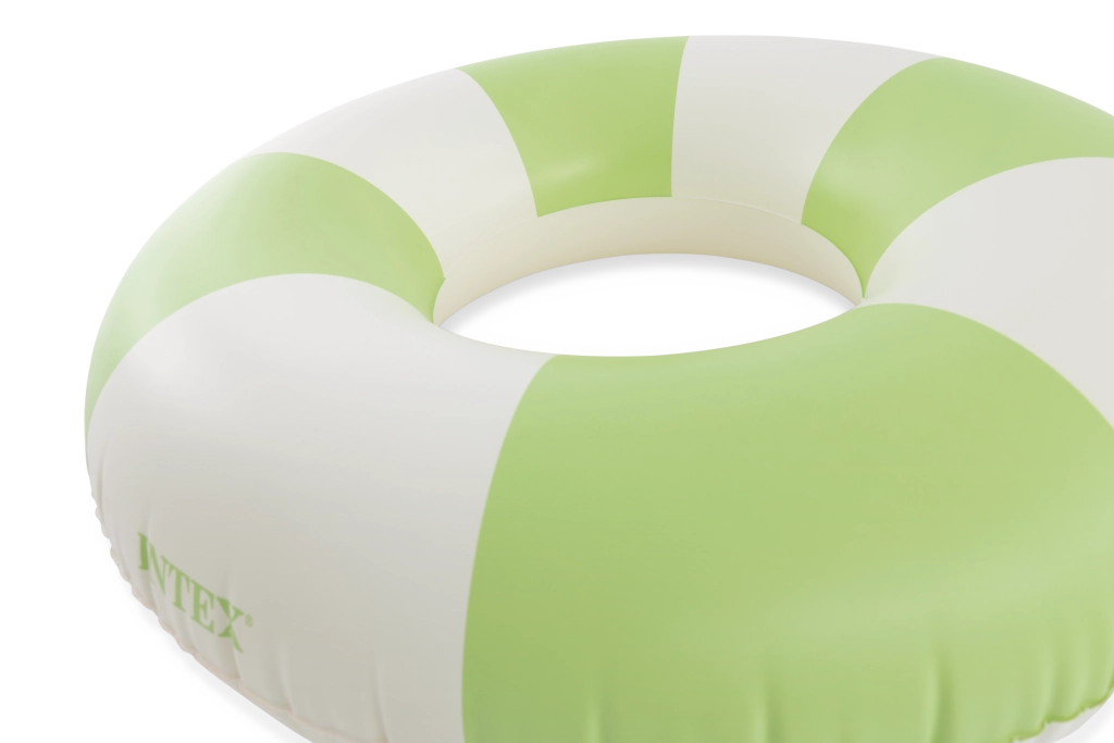 Den oppustelige badering Coastal Cabana kombinerer et frisk design i pastelnuancer af blå, grøn og pink med praktiske funktioner for sikre og komfortable vandaktiviteter. Med en diameter på 91 cm giver den rigelig plads og komfort både i poolen og ved havet.