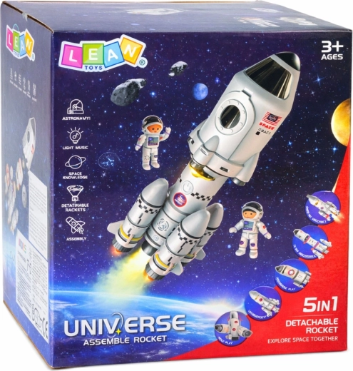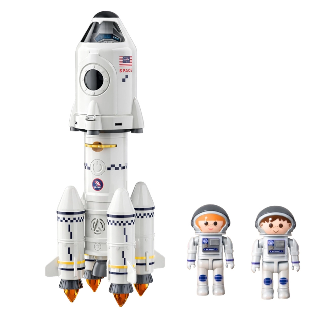Denne gennemarbejdede legetøjssæt udvikler fantasi, nysgerrighed og interesse for astronomi. Børn bliver midtpunktet i rummissioner takket være kombinationen af lys- og lydeffekter, suppleret af en røg-effekt ved opsendelse. Projektoren viser 24 billeder i 3 temaer (rum, galakser, planeter), som kan skiftes manuelt.