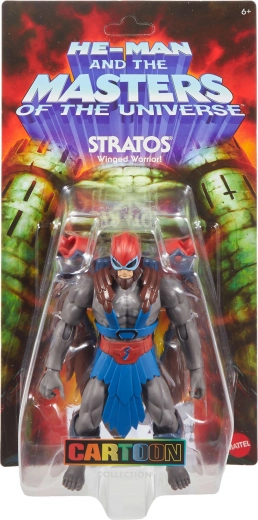 Figuren STRATOS, den flyvende kriger og allieret med HE-MAN, patruljerer over Eternia og forsvarer Castle Grayskull mod Skeletors styrker. Figuren giver et moderne take på den klassiske helt med markante detaljer og brede muligheder for posering til action-scener eller udstilling i vitrinen.