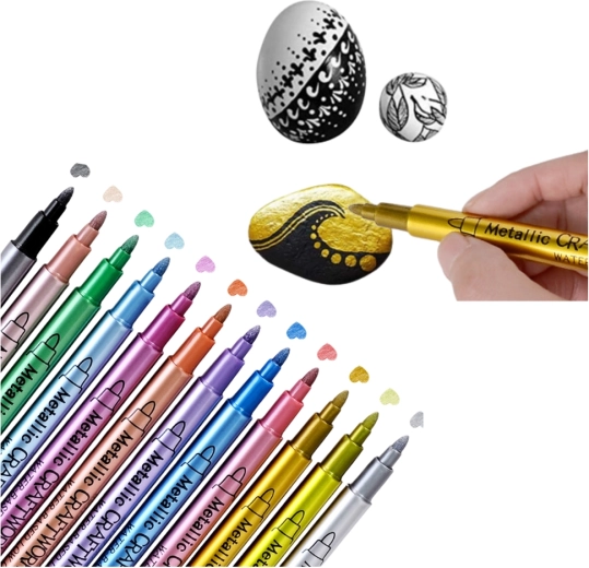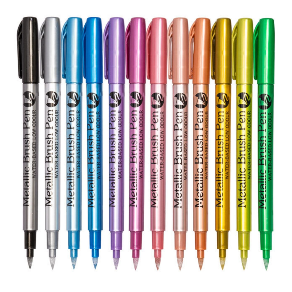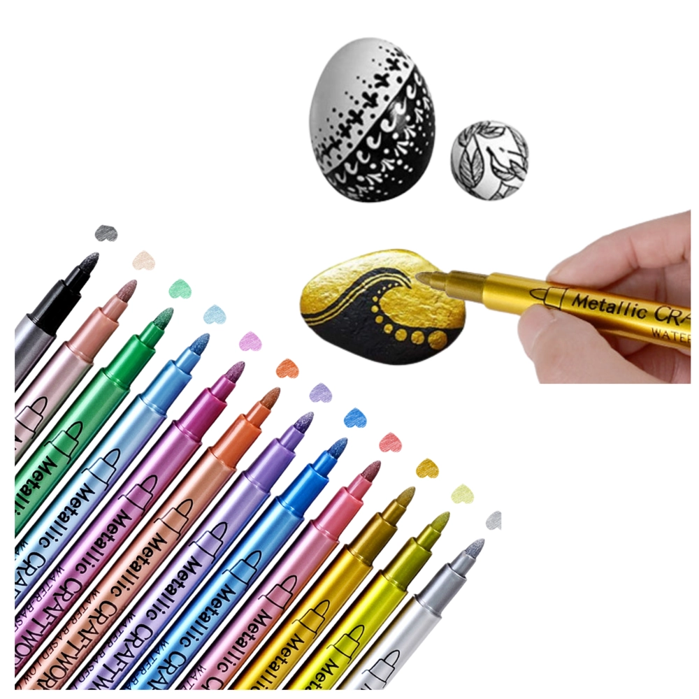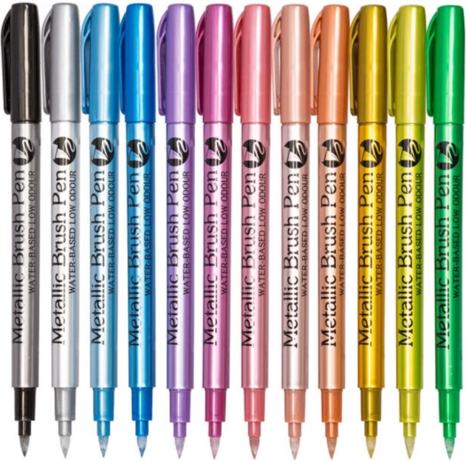 • 12 mættede metalliske nuancer til dekoration, tegning og skrivning